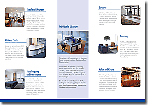 Auf den Innenseiten werden die Leistungen beschrieben, sowie Referenzbeispiele aufgeführt.